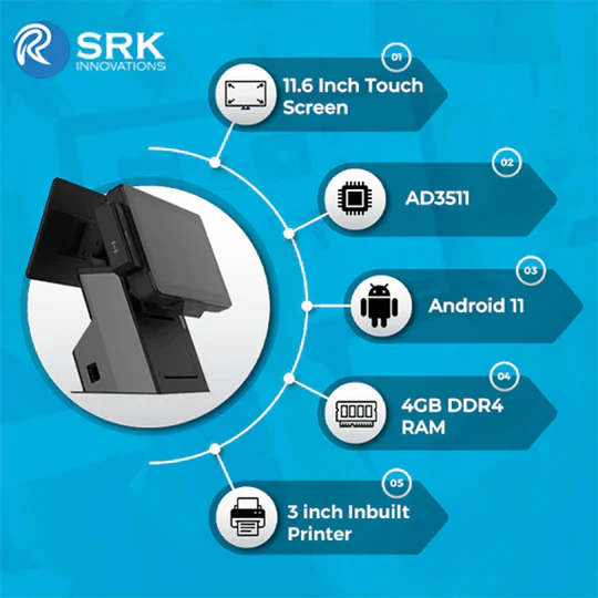 The AD3511 Android POS is a compact and innovative Point of Sale (POS) solution designed to meet the needs of modern businesses in retail, hospitality, and more. Featuring a powerful RK3566/RK3568 Quad-core Cortex-A55 CPU running at 2.0GHz, this system ensures smooth performance for handling transactions, inventory management, and customer engagement. Its 11.6” or 12.5” HD touchscreen display with projected capacitive technology delivers responsive and intuitive navigation.